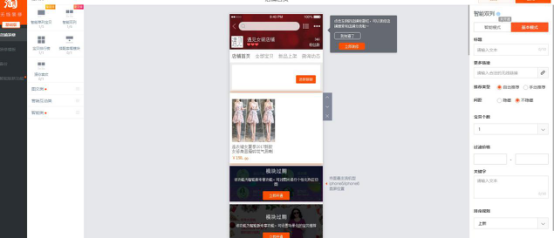 无线端的店铺装修是非常重要的,你的店铺是否精致,是否整洁,是否能吸引买家进行多款浏览,那么就取决了你的店铺设计装修。从卖家中心打开无线运营中心,店铺装修, 我们可以看到在左侧有四类模板:宝贝类,图文类,营销互动类,智能类,今天我们主讲初期装修所使用到的宝贝类与图文类模块。一、宝贝类。1.智能宝贝单列,这个模块有一个是智能模式和基础模式。我们如果不是智能版的就只能选择基础模式,智能模式和基础模式唯一的区别就是智能版有一个千人千面展示。那这个千人千面展示的作用就是它会根据客户经常浏览的宝贝所产生的个性化来给他推荐类似的宝贝。那么在这里的话我们就以大部分人都用的基础模式为例,鼠标按住智能宝贝单列的模块,拖到无线编辑区域,如下图所示,